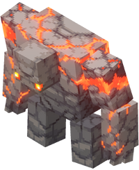 It appears to be a prototype of the related redstone monstrosity posessing a few similar features but with a more natural texture and redstone only as a few large cracks in the bodyit also posesses a slimmer build with only two eyes and no visible mouth. It has no horns no mouth smaller size and less redstone than theredstone monstrosity. It appears to be powered by a redstone block on its back and one in each of.